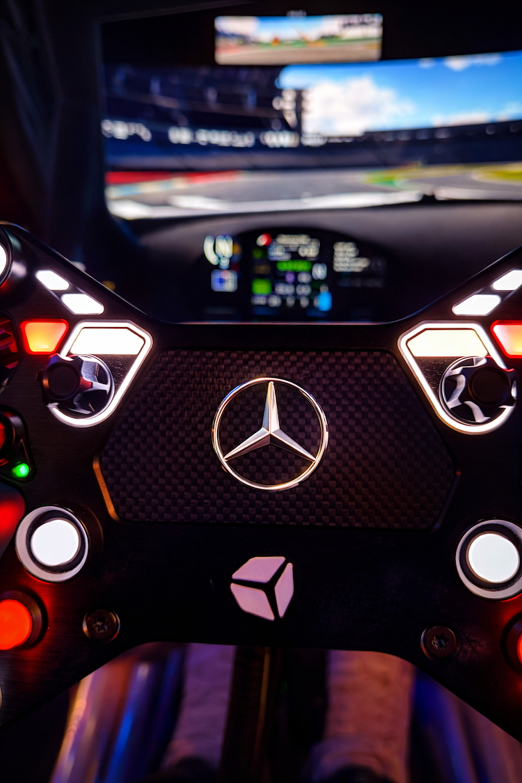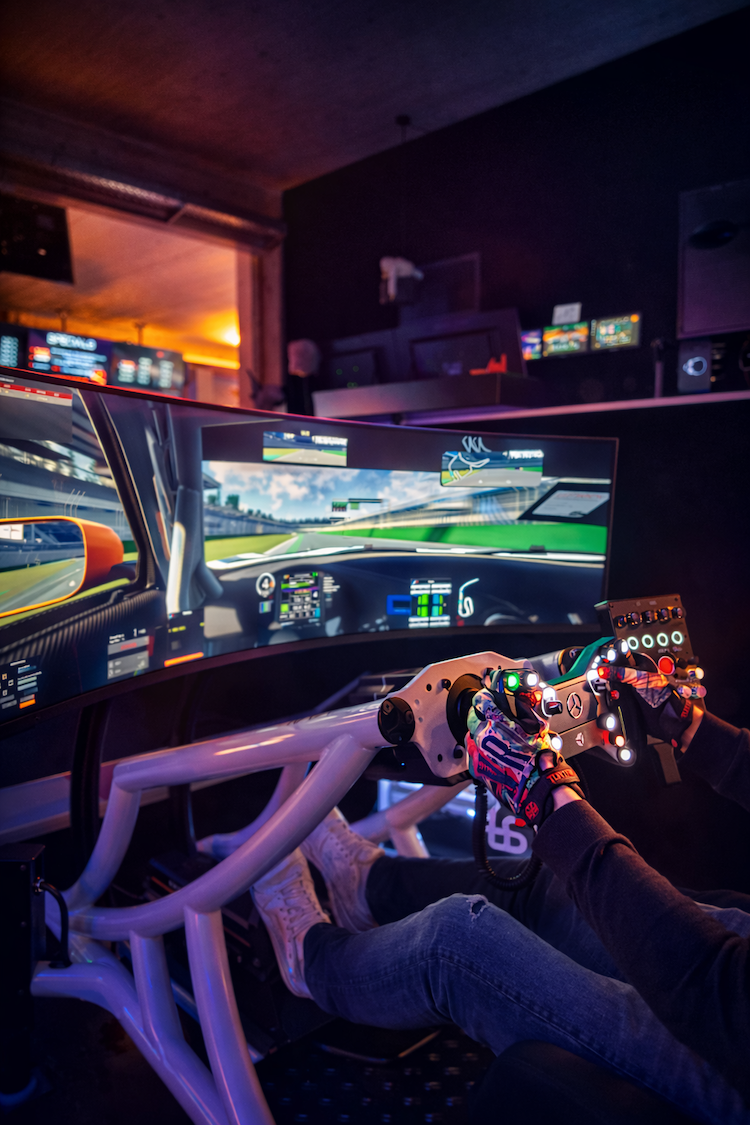 Experience professional virtual motorsport on the best equipment available, such as the Simucube 3 wheelbase, Simucube Active Pedals, Heusinkveld Ultimate+ pedals, Cube Controls steering wheels, OLED curved screens, triple screen 3×55″, and of course FIA®-certified motion systems.